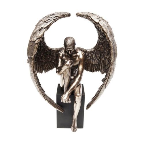 Änglaskulpturen i bronsfärg är detaljerad och imponerande realistisk.