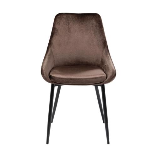 Matstol med läckert tyg i nyanser av brunt, brons och beige.