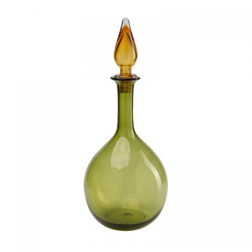 Stilfull skål i grönt räfflat glas på fot - som skål och vas