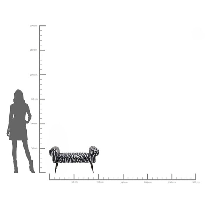 Dekorativ sittbänk med zebramönster i svart och vitt och svarta ben.