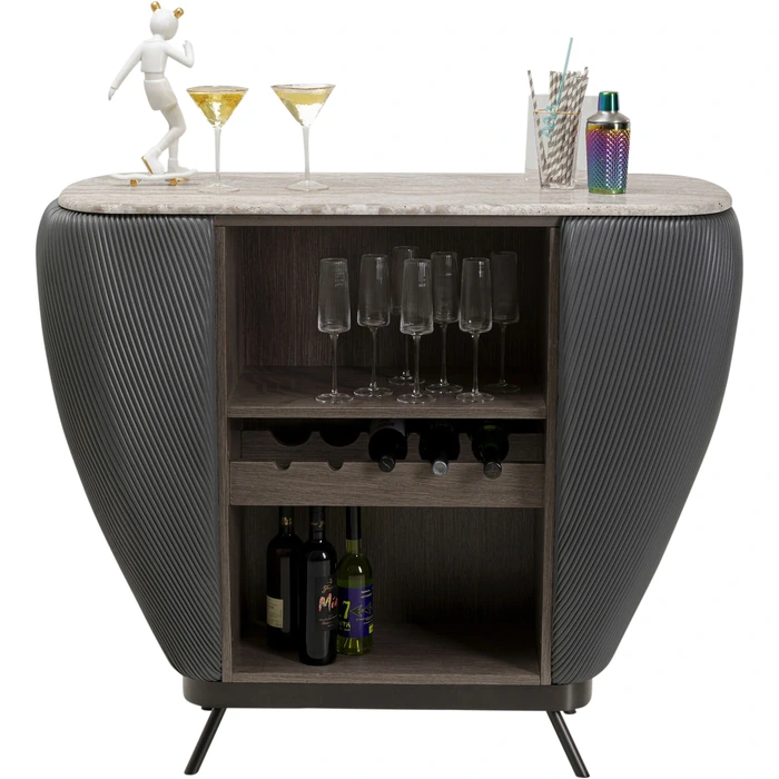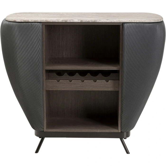 Barskåp Rio som förenar hotellkänsla med modern design. Hyllor och avdelare gör det lätt att organisera glas, flaskor och tillbehör – en naturlig mittpunkt i vardagsrum eller matrum.