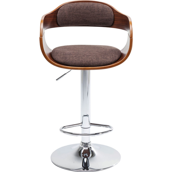 Höj- och sänkbar barstol i valnöts-faner och brun klädsel.