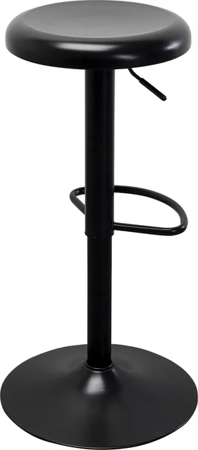 Denna stilrena, svarta barstol kombinerar enkelhet med elegans för att ge din inredning en modern touch. Med sin runda sits och slimmade design passar den perfekt i både hem och barer. Den stabila foten ger extra säkerhet medan den justerbara höjden gör den mångsidig och bekväm att använda. Oavsett om du placerar den vid köksön, i hemma-baren eller som en extra sittplats, kommer denna barstol att lyfta känslan i rummet med sin tidlösa design. Ett måste för dig som vill kombinera stil och funktion i ditt hem! Justerbar i höjdled.