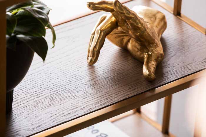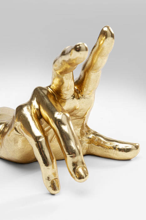En läcker inredningsdetalj är dessa två händer i guld ( Bokstöd Holding Fingers, 2-dels set) som kan placeras som dekor på soffbordet, i ett fönster eller i par som bokstöd.
