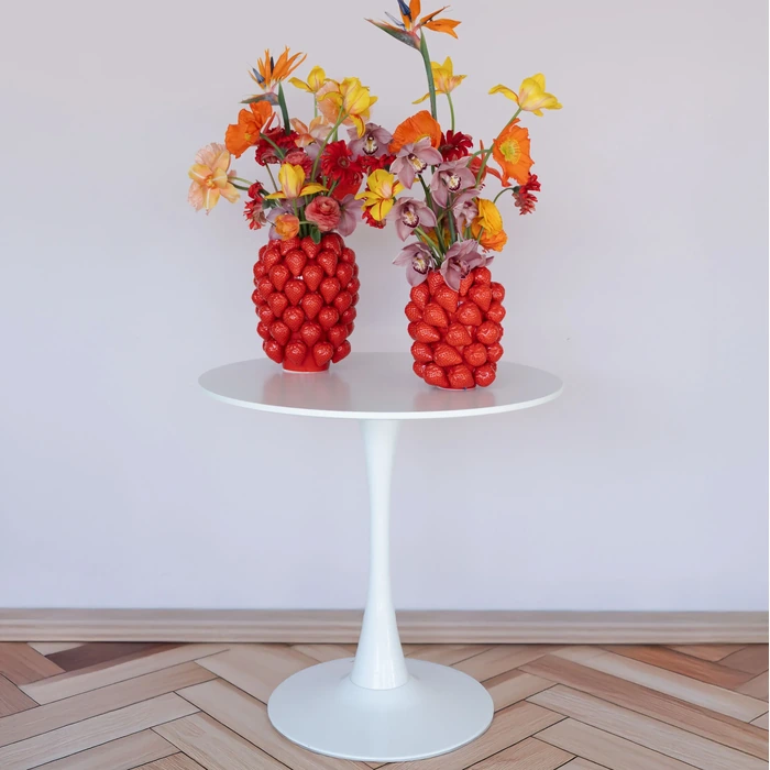 Den centrala trumpetfoten i lackerat stål ger stabilitet och ett luftigt formspråk, samtidigt som bordsskivan i lackerad MDF är lättskött och tålig. Bordet fungerar lika bra för vardagliga måltider som för arbete eller sociala stunder på kvällen. En tidlös klassiker i kompakt format.