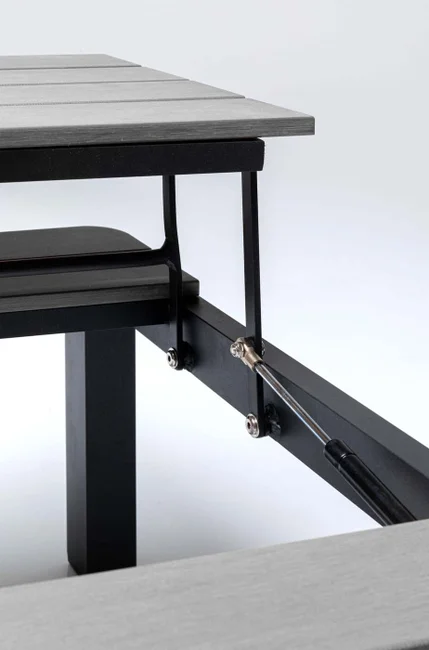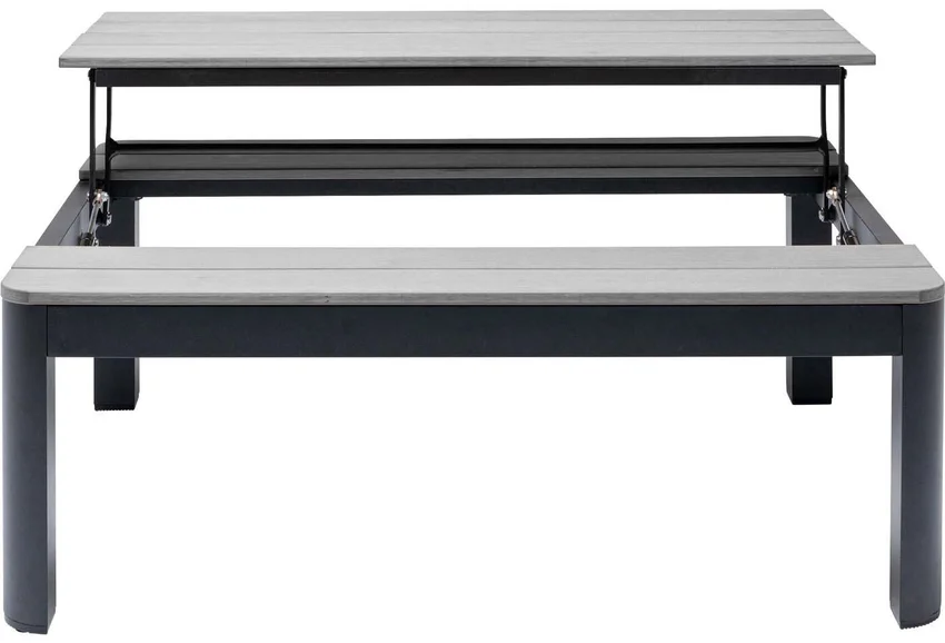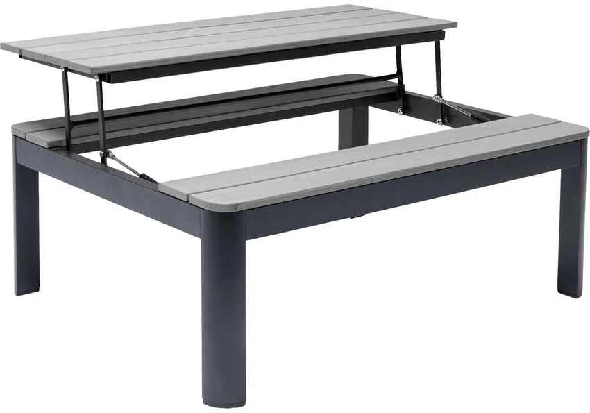 Ett praktiskt bord med lyftbar bordsskiva i grått och svart. Perfekt utemöbel för vår, sommar och höst. Stilrent trädgårdsbord att ställa på terrassen, altanen och i trädgården. Lätt att matcha med andra trädgårdsmöbler.