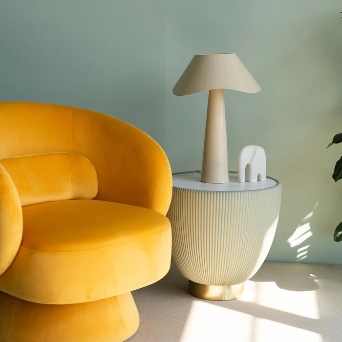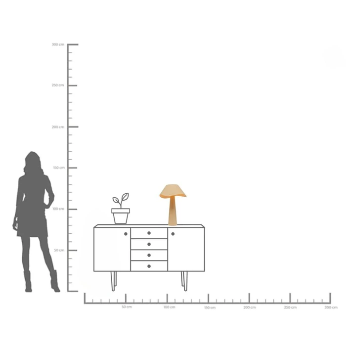 Den rundade lampskärmen ger lampan ett mjukt och modernt uttryck samtidigt som den sprider ett behagligt ljus i rummet. Den fungerar perfekt som stämningsbelysning i vardagsrum, sovrum eller hall.
