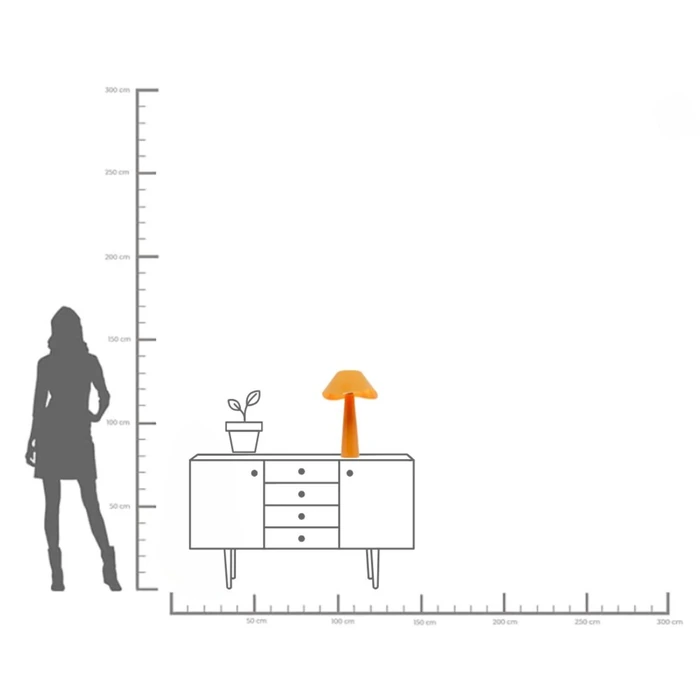 Den livfulla färgen ger en positiv och upplyftande känsla och kan enkelt användas för att skapa kontrast i neutrala interiörer. Samtidigt gör lampans rena form att den även passar i moderna miljöer där man vill addera en färgstark accent. Inspirationen från 60-talets design ger lampan ett lekfullt uttryck som fungerar utmärkt tillsammans med både minimalistiska möbler och mer eklektiska inredningar.