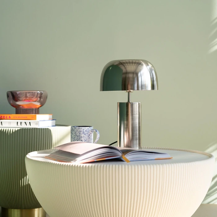 Belysningsserien Kupol Loungy är en riktig höjdpunkt bland designlampor. Med sin höjd på 38 centimeter är bordslampan perfekt som nattdukslampa eller för att skapa en dekorativ ljuspunkt i hallen, på sideboarden eller skrivbordet. Den runda lampskärmen riktar ljuset nedåt och ger en mjuk, behaglig belysning. Loungy är tillverkad helt i metall och lackerad för lång hållbarhet – en kvalitetslampa som kombinerar funktion och form. Den tidlösa designen i kromfinish gör att lampan smälter in i alla typer av inredningar, från modern minimalism till retroinspirerade miljöer. Med sitt rena formspråk och sin gedigna konstruktion är Loungy en lampa som håller över tid – både i stil och kvalitet. Finns i flera färger och även som golvlampa.