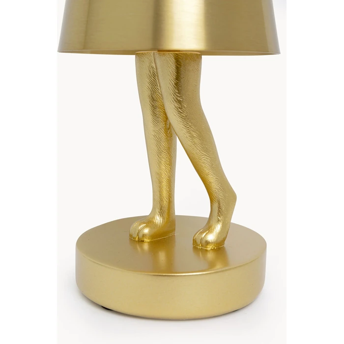 Bordslampa LED Rabbit i guld är en dekorativ stämningslampa som fungerar lika bra på balkongen som i vardagsrummet. Den charmiga kaninfiguren bär lampskärmen som en liten kjol och blir snabbt ett blickfång på bordet – perfekt till middagar utomhus, mys i soffhörnan eller som nattlampa i sovrummet.