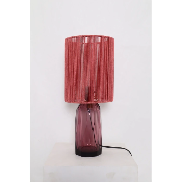 Bordslampa Tråd i rosa glas förenar mjuk belysning med dekorativ form. Den kompakta storleken gör den enkel att placera på nattduksbord, konsol eller fönsterbräda och den textila skärmen ger ett varmt, behagligt ljus som höjer stämningen i rummet.