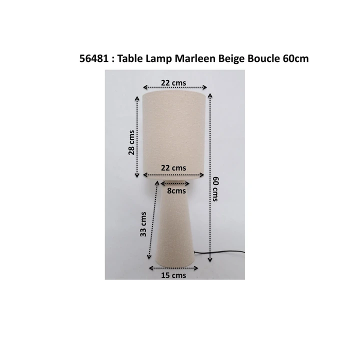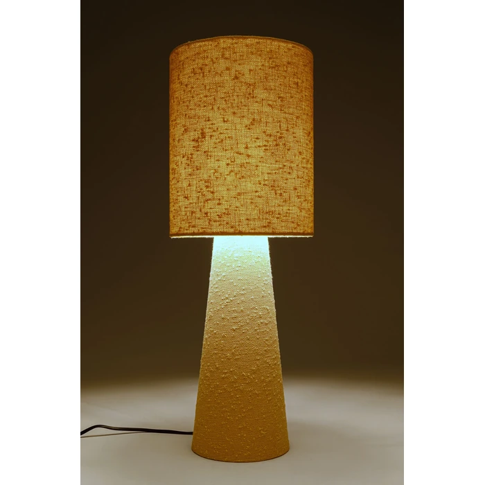 Bordslampa Marleen i beige bouclé är en stilren och varm ljuskälla som passar perfekt i allt från skandinaviska till lantligt inspirerade hem. Den klädda foten och skärmen i strukturerad linnetextil skapar ett mjukt och behagligt ljus som gör sig lika bra i sovrum som på sidobord och fönsterbrädor. Den stilrena formen bidrar till en lugn, naturlig atmosfär.