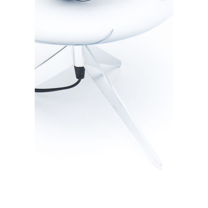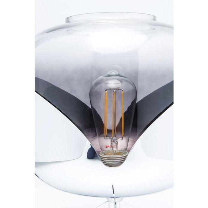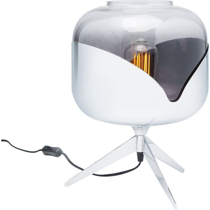 Coola Bordslampa Meryll i krom har en stilmix av modern och retro design och känns innovativ i både form och material. Lampan har en tydlig 70-tals inspirerad design som vi gillar! Lampan finns även i en hög, smalare modell. Material: Kromat stål, färgat glas. Mått: höjd 35 x diameter 27 cm. Skärmens mått: höjd 20 x diameter 25 cm. Sladdlängd 250 cm. Vikt. 1,8 kg. Ljuskälla: E27 sockel.