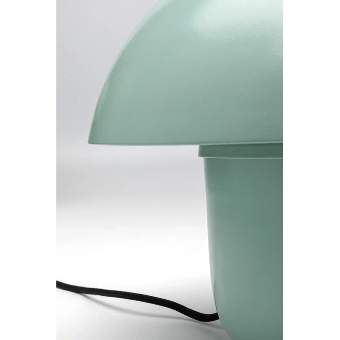 Mintgrön bordslampa i ikonisk svampform med mjukt och stämningsfullt ljus.
