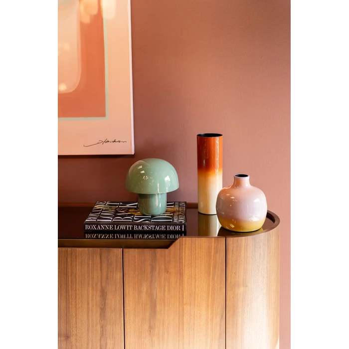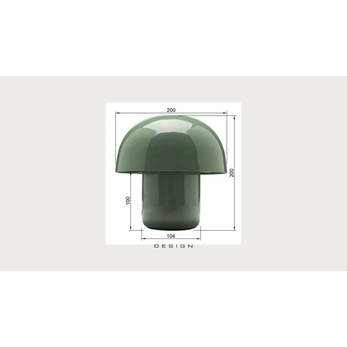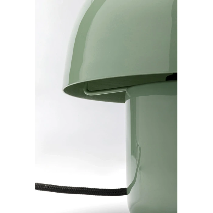 Bordslampa Mushroom sage 20 cm är en dekorativ och kompakt bordslampa i modern svampform. Den blanka salviegröna ytan ger lampan ett elegant uttryck, medan den mjuka formen sprider ett varmt och behagligt ljus i rummet.