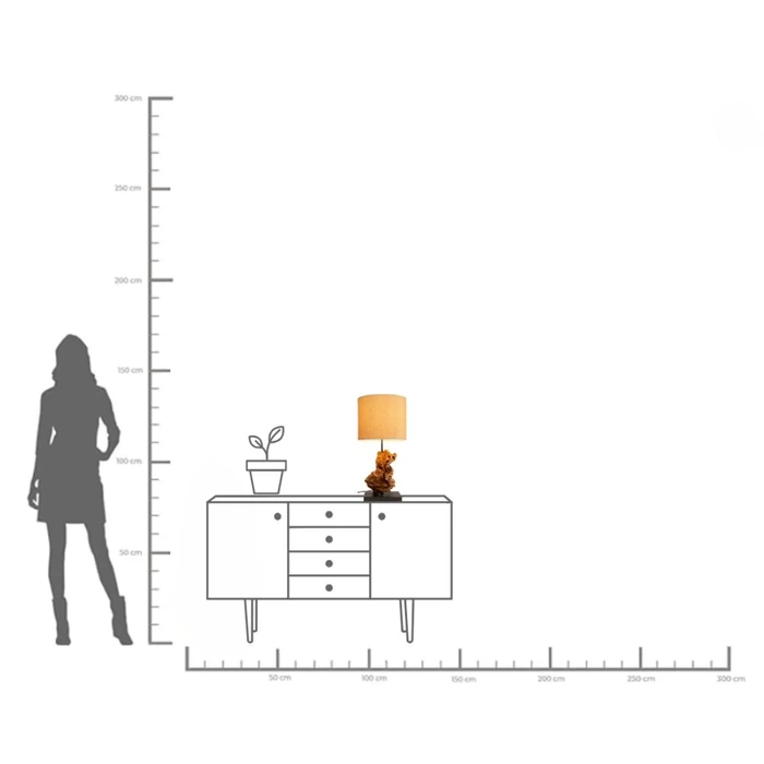 Bordslampa Nature Flame 56 cm kombinerar naturliga material med stilren design och blir en dekorativ ljuskälla med varm och harmonisk känsla. Lampans svarta fot får ett levande uttryck genom de naturligt formade trädetaljerna, vilket gör varje exemplar unikt. Den beige bomullsskärmen mjukar upp helheten och skapar en balanserad kombination av kontrast, värme och naturlig elegans.