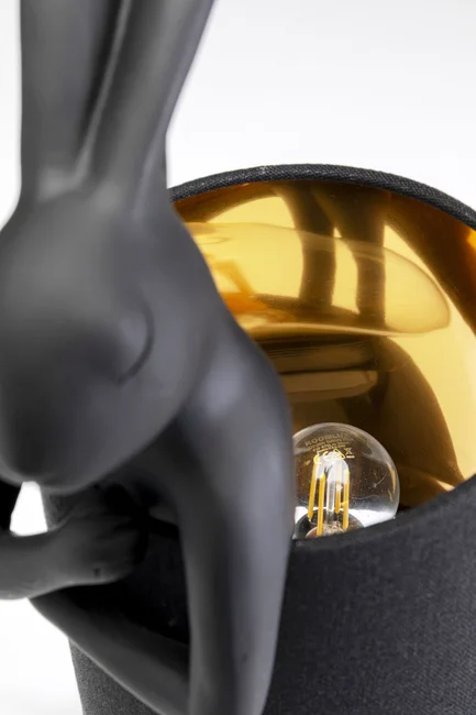 Vår populära kaninlampa Rabbit här i helsvart med snygg, matt finish. Bordslampan är mer än bara belysning, den är också en dekorativ skulptur även när lampan är släckt. Som en showpiece i ditt fönster eller som en trevlig sänglampa, mysbelysning till hallen, till kontoret eller som lampa på sidobordet bredvid fåtöljen i vardagsrummet.