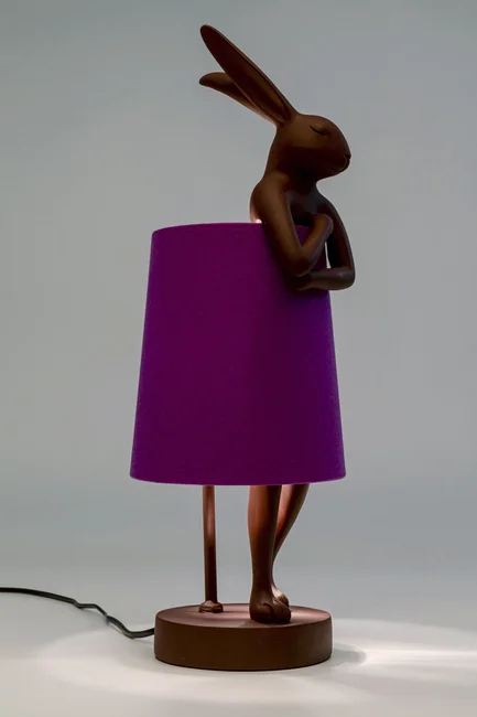 Den här unika och färgglada bordslampan från Wohnzimmer, kallad Rabbit, är en riktig blickfångare som kombinerar lekfull design med funktionell belysning. Med sin skulpturala form av en vinröd kanin med lampskärm i lila-färgat linne, tillför den både värme och stil till rummet. Lampans nedtonade, vinröda färg och kontrasten med den skarpa lila skärmen skapar en livfull och modern känsla, vilket gör den till en perfekt dekoration för sovrummet, vardagsrummet eller barnrummet. Bordslampor som denna bidrar till en personlig inredning och bryter av den traditionella stilen på ett charmigt sätt.