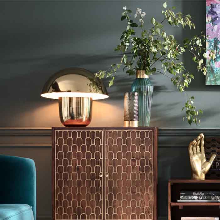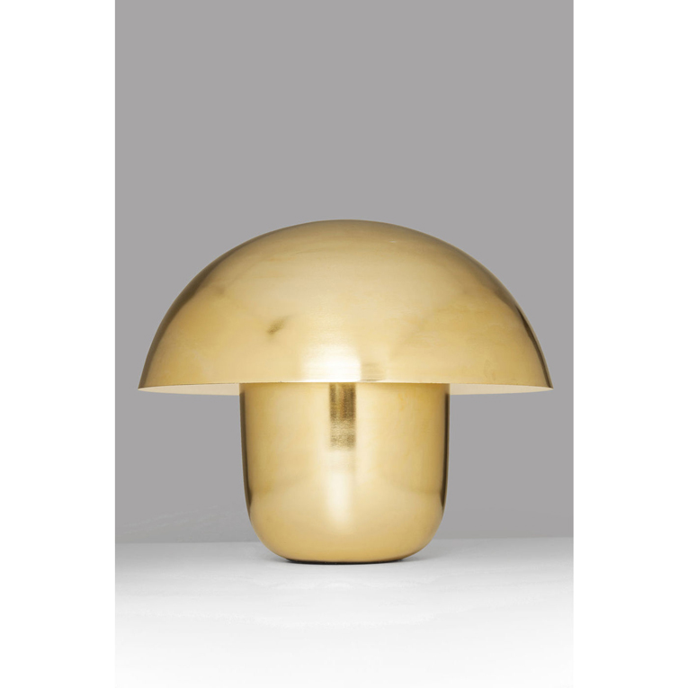 Svamplampan från 70-talet är tillbaka och är nu trendigare än någonsin. En snygg inredningsdetalj och tacksam som ljuskälla med ett behagligt sken. Det perfekta tillbehöret för att skapa en stilfull touch på bordet, byrån, skänken eller på hyllan. Stilen på lampan påminner om luxuös 70-tals inredning och passar så väl in med både minimalistisk modern inredning liksom med möbler och dekor i Art deco eller i retrostil. Lampfoten är i guld/mässingfinish. Plocka din guldsvamp här!