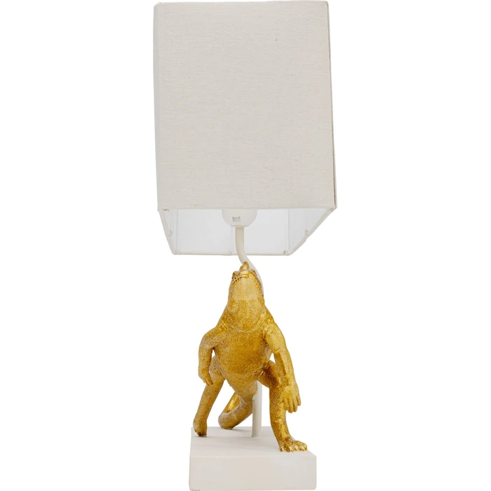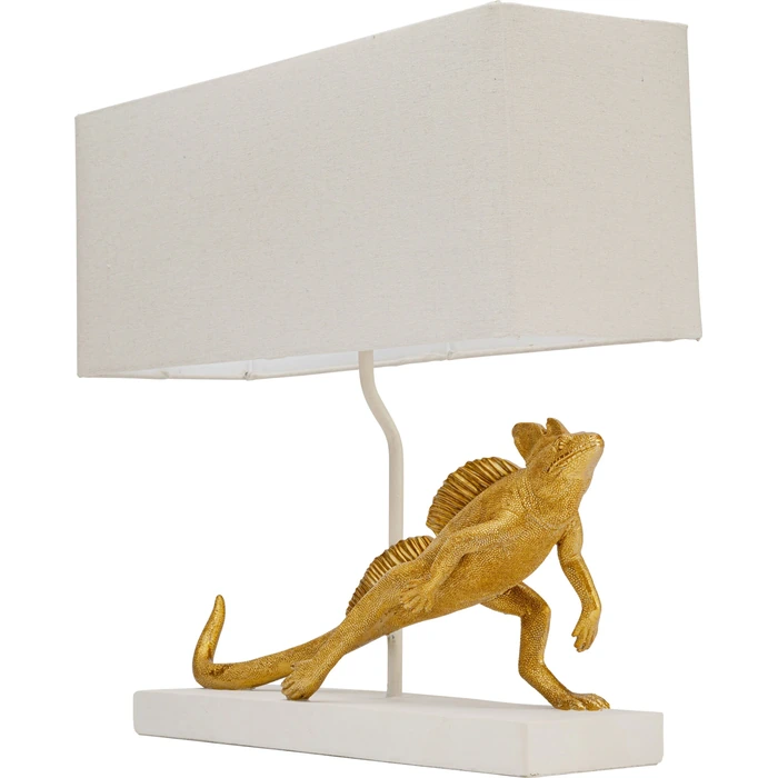 Bordslampa i vit finish med en detaljerad ödla som håller lampsockeln och skapar en lekfull men stilren känsla. Den kompakta höjden på 42 cm gör lampan perfekt på sidobord, hylla eller sängbord där du vill ha både belysning och dekoration.