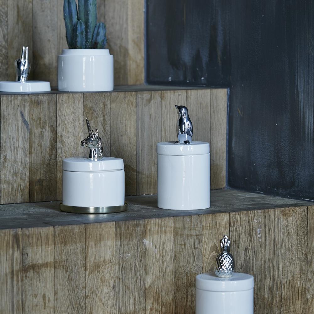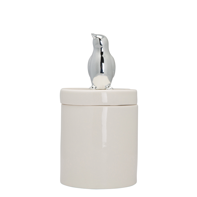 En fin inredningsdetalj är denna lilla burk i keramik som dekorativt döljer och förvarar dina småsaker - bomull, smycken, tändstickor, karameller... Även fin som present!