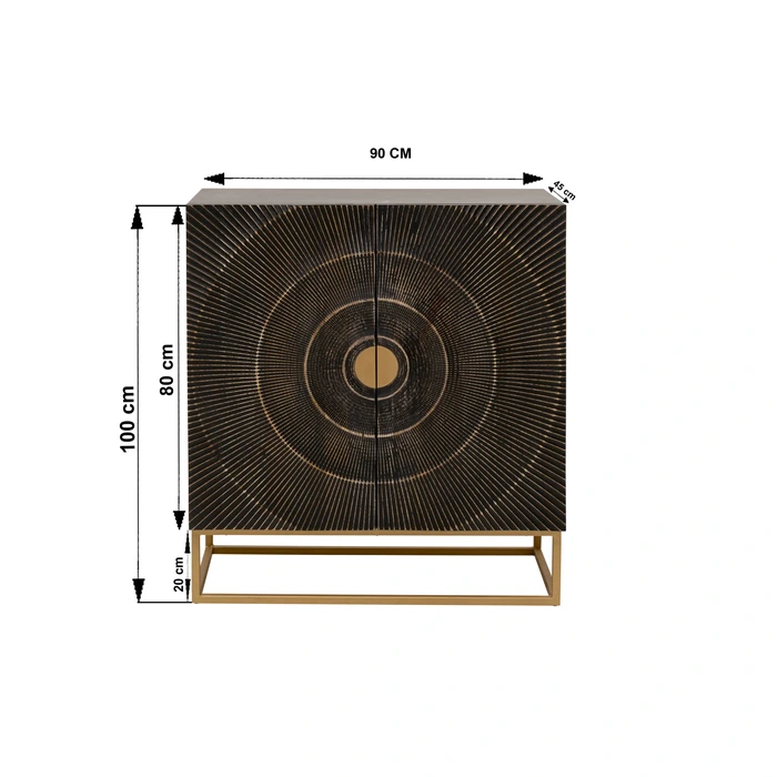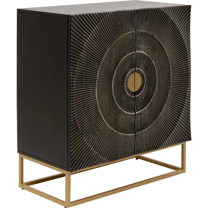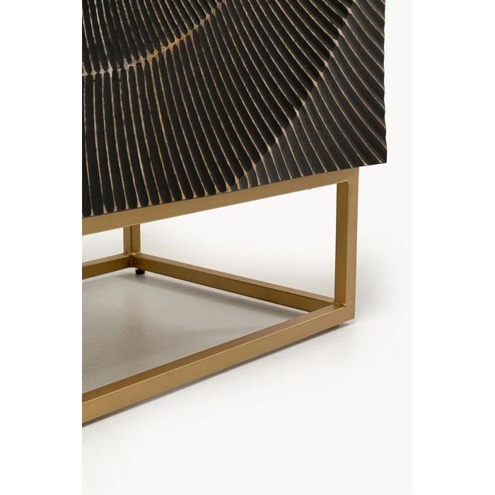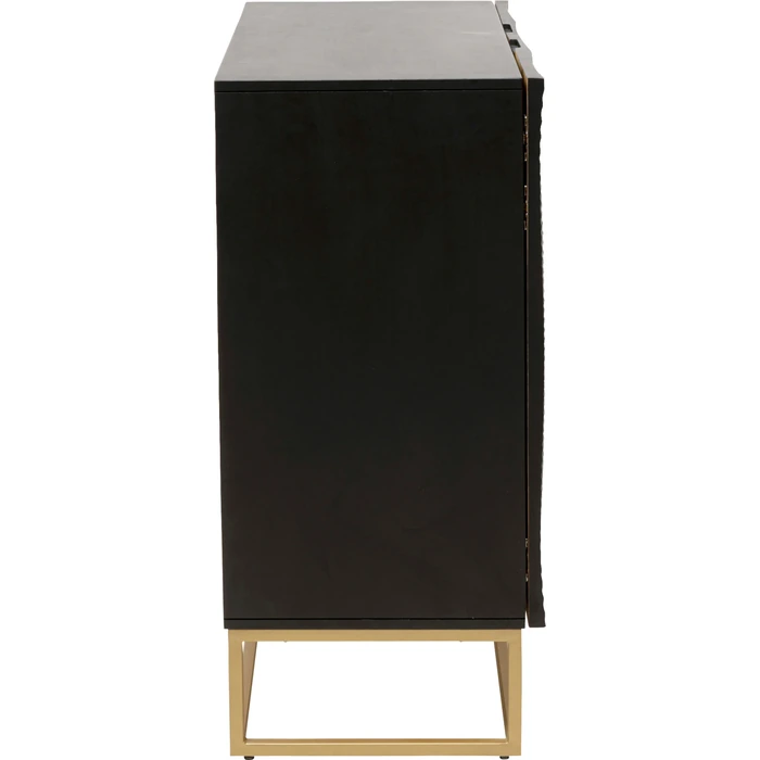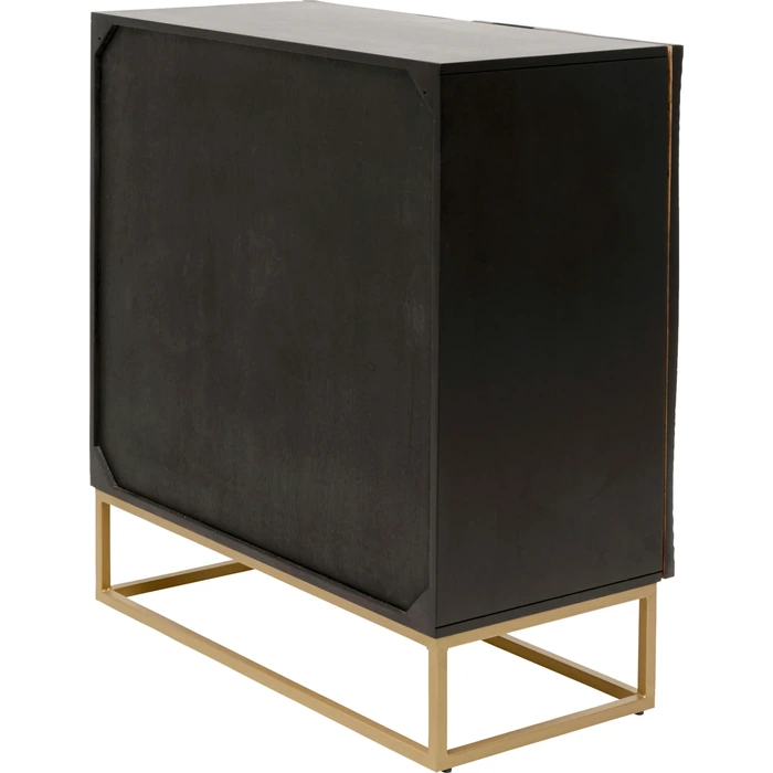 Den eleganta ramen i guldfärgat stål tillför en modern lätthet och en diskret touch av glamour. Med soft-close-funktion stängs dörrarna mjukt och tyst, vilket bidrar till en behaglig användarupplevelse. Byrån erbjuder generöst och flexibelt förvaringsutrymme för kläder, porslin eller vardagens föremål och passar lika bra i vardagsrum, sovrum som i hall.