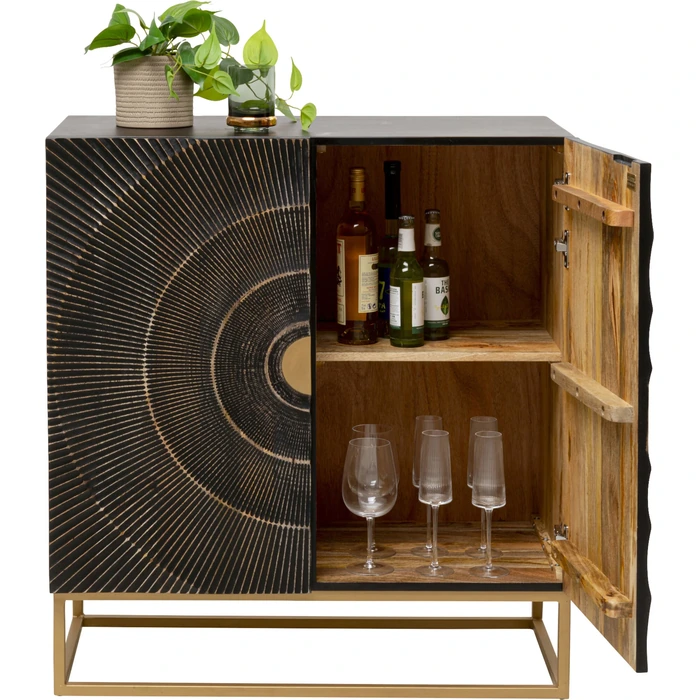Mörk byrå i massivt mangoträ med handskuren front och elegant guldram.