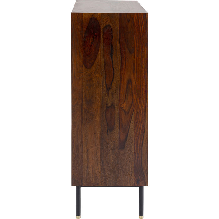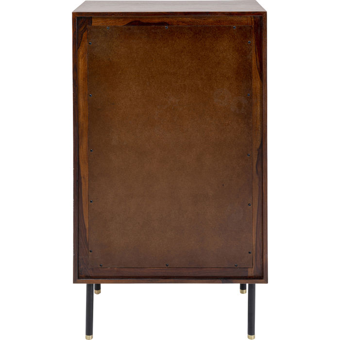 Material: Stomme och lådor i lackad sheeshamträ, lådornas botten av obehandlad mdf. Underrede i pulverlackat stål och bakstycke av obehandlad mdf.