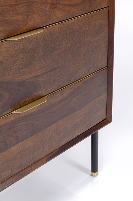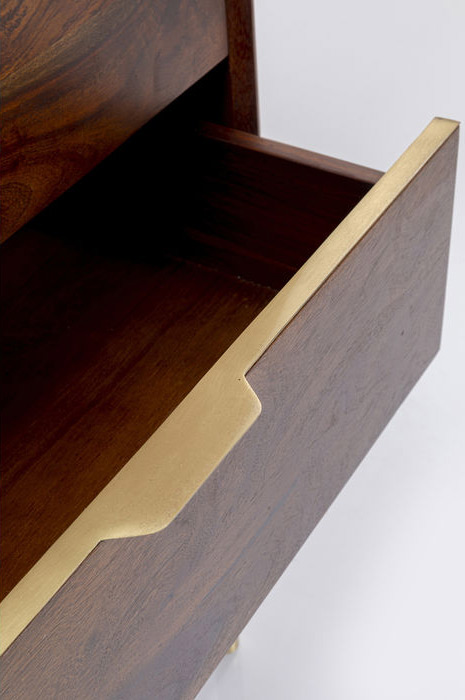 Stilen och elegant byrå i massivt mörkbrunt trä med fin ådring och eleganta detaljer, design av Morten Georgsen. Lägg märke till lådornas smäckra handtag i borstad mässingsfinish! Byrån är både en praktiskt och vacker möbel med fem lådor som ger förvaring i hall, sovrum och vardagsrum. I möbelserien finns även matbord, barskåp, sängbord, hallmöbler, speglar och fler kommande nyheter.