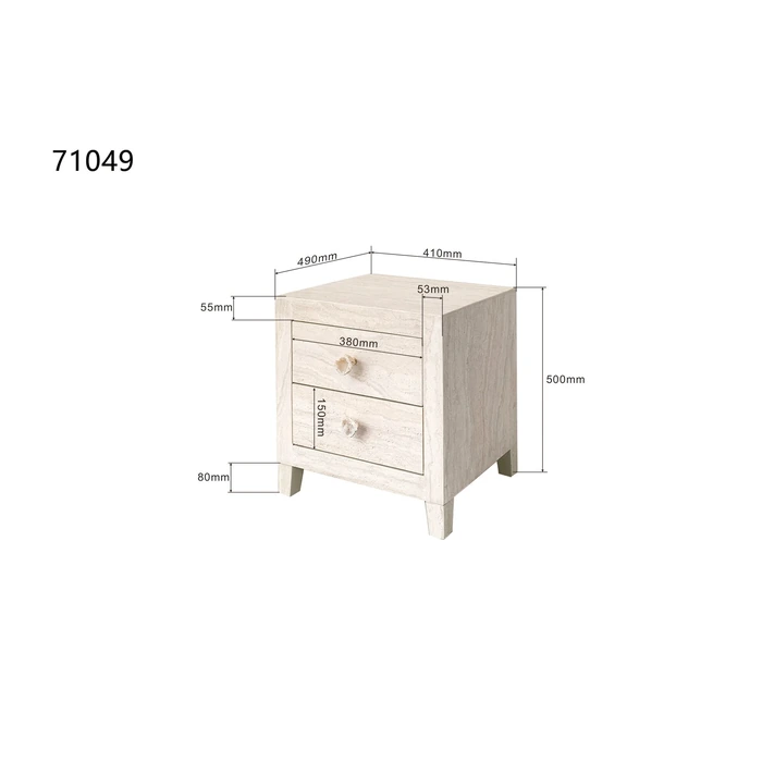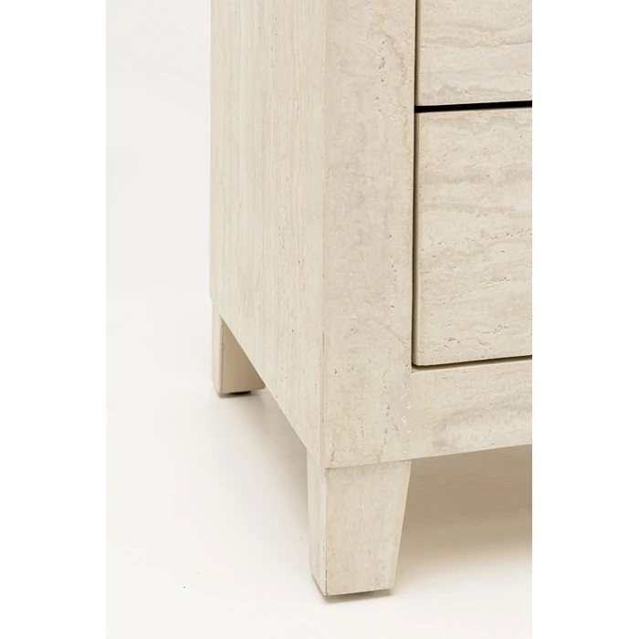 Kompakt byrå i beige travertinlook med två lådor och exklusiva stenhandtag.