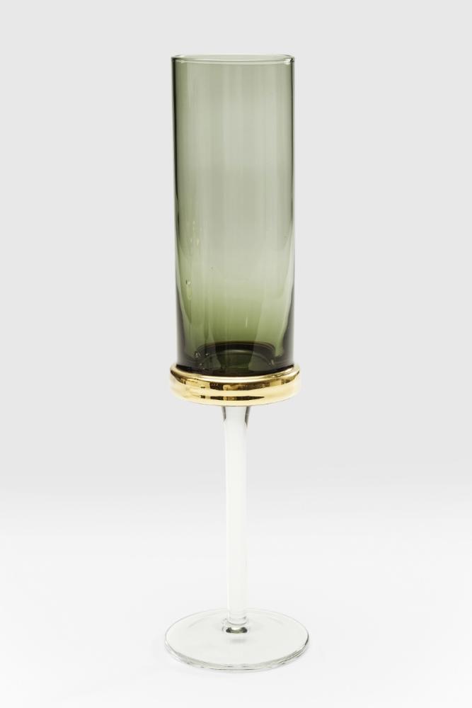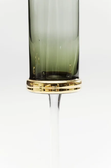 Ett modernt, elegant champagneglas med gröntonad färg i glaset och gulddetalj. Säljes i fyrpack!