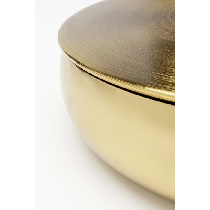 Dekor Burk Shine Ø31cm är ett gnistrande blickfång som kombinerar glamourös elegans med praktisk funktion. Den rundade formen i blankt guldfärgat stål skapar ett sofistikerat uttryck, medan locket pryds av en äkta agatsten med naturliga skiftningar som gör varje burk unik.