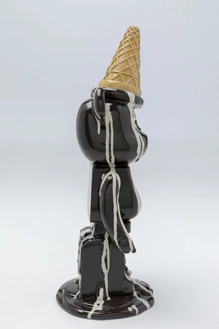 Unik och lekfull skapelse i form av en söt björn med glasstrut på huvudet. Dess stilrena färg gör den enkel att placera på alla ytor. Prydnaden ger en känsla av rörelse och liv i rummet.
