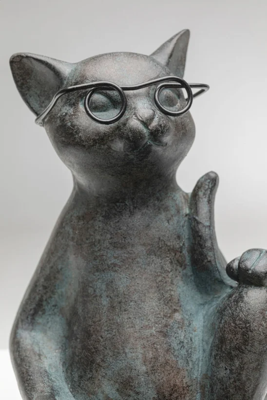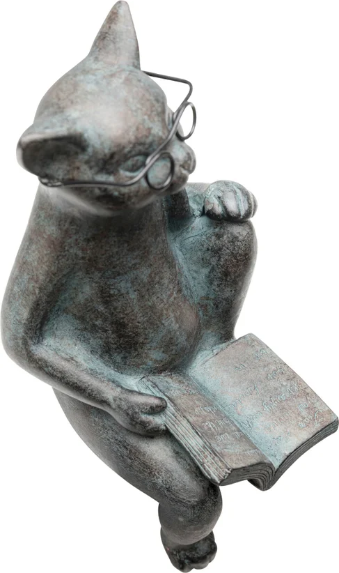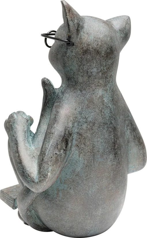 Charmig dekor i polyresin – en läsande katt med glasögon och bok. Perfekt för bokälskare och inredningsentusiaster i moderna hem.