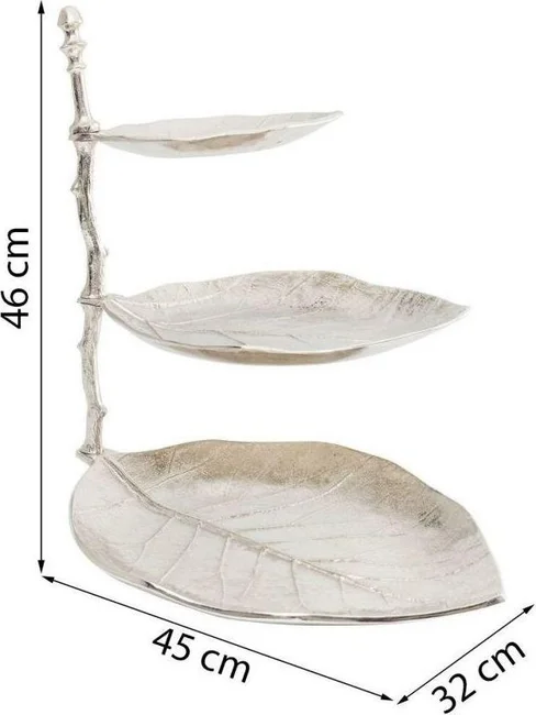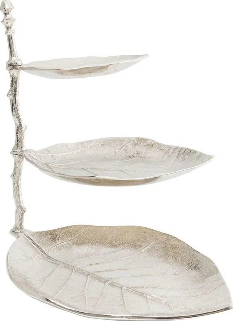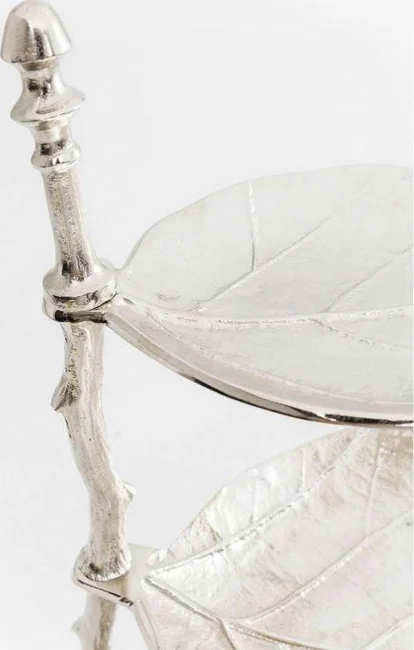 Elegant silverfärgat våningsfat med bladmotiv för stilfull förvaring