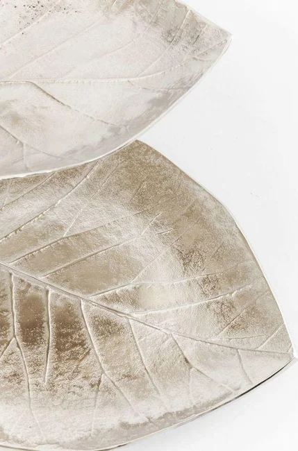 Det här dekorativa våningsfatet i silver är en både praktisk och stilfull lösning för att organisera småsaker och smycken i hemmet. Fatet har tre vackert utformade blad som skapar en stiliserad och sofistikerad look. Oavsett om det används i hallen för nycklar och mobiltelefoner, i sovrummet för klockor och smycken eller i badrummet för burkar och småförpackningar, fungerar detta fat perfekt för att hålla ordning och reda. Den metalliska ytan i silver, tillverkad av nickelpläterad aluminium, gör det särskilt lämpligt för dekorer eller varför inte godsaker. Fatets skimrande finish och storlek gör det till en riktig blickfångare, oavsett om det placeras på byrån, konsolbordet eller hyllan. För en säsongsbetonad touch kan fatet även dekoreras, exempelvis med färgade ägg och fjädrar till påsk, eller med kottar och julkulor under vintern.