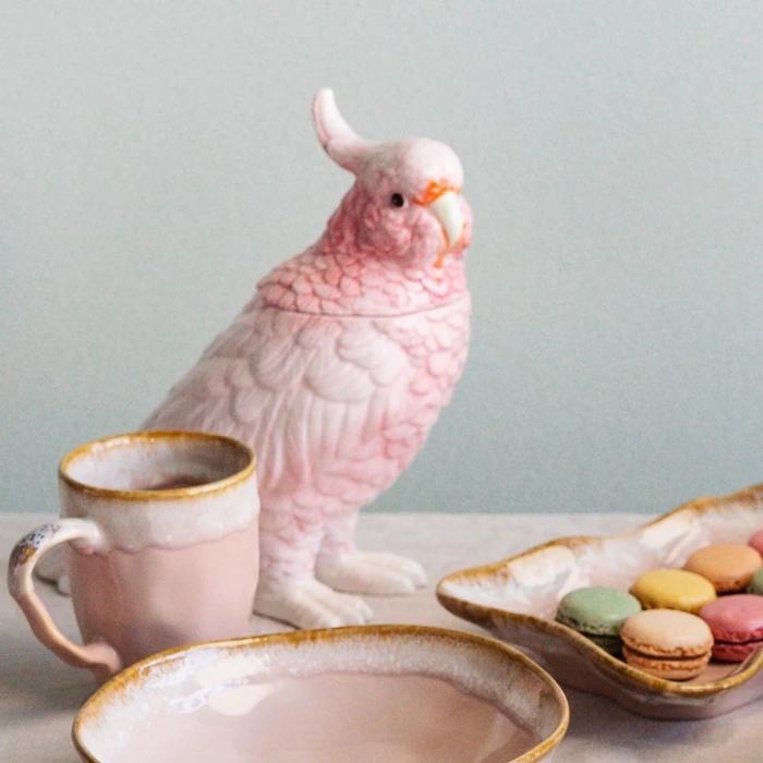 Dekorburk Fågel – Rosa, 23 cm är ett lekfullt och praktiskt inslag på sideboardet eller sminkbordet. Under locket ryms småsaker som smycken och nycklar, medan den handmålade ytan ger ett personligt uttryck.