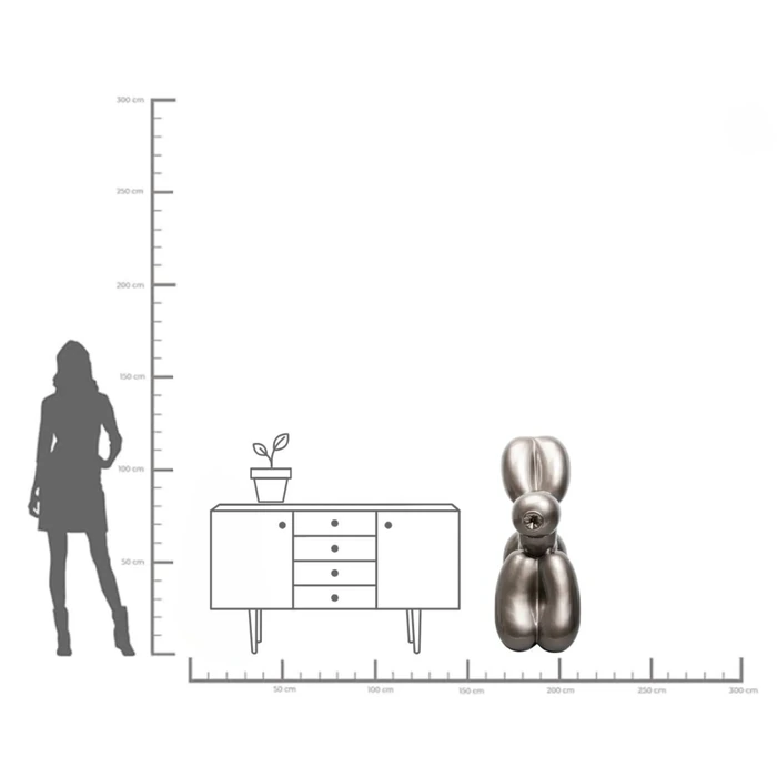 Dekorfigur Balloon Dog är en stor imponerande XL-skulptur som fungerar som ett kraftfullt blickfång i både privata och offentliga miljöer. Med sin ikoniska ballongform och mörkgrå metalliska finish skapar figuren ett konstnärligt uttryck som för tankarna till modern pop-art och samtida design.