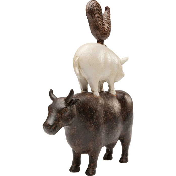 Dekorfigur Farm Animals är en charmig och humoristisk inredningsdetalj där en tupp, en gris och en ko står staplade på varandra i ett lekfullt uttryck. Figuren förmedlar en varm, lantlig känsla och blir ett personligt blickfång i kök, vardagsrum eller hall.