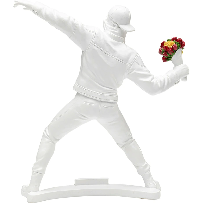 Dekorfigur Street Art Bouquet kombinerar urban street art-känsla med ett poetiskt och symboliskt uttryck. Den helvita skulpturen föreställer en figur som håller en blomsterbukett, vilket skapar en stark kontrast mellan det råa och det mjuka.