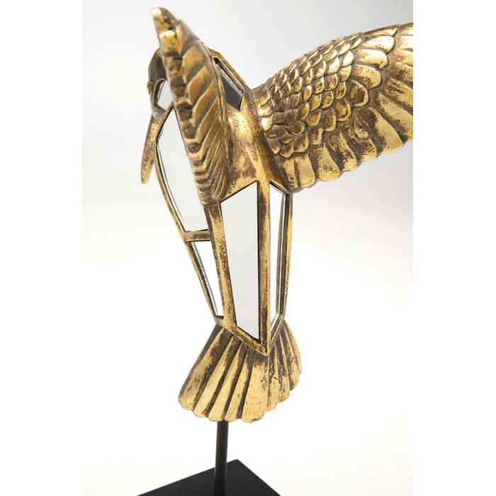 Dekorobjekt Hummingbird Mirror 41 cm är en konstnärlig inredningsdetalj som symboliserar lätthet och glädje. De speglande glasytorna fångar ljuset och skapar levande reflektioner som ger rummet djup och elegans. De gyllene detaljerna förstärker det exklusiva uttrycket och gör figuren till ett stilfullt blickfång.