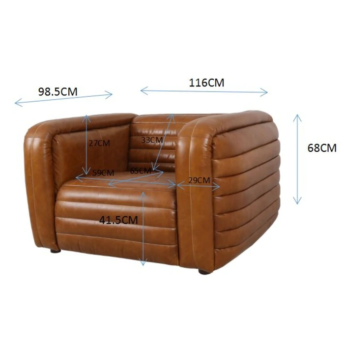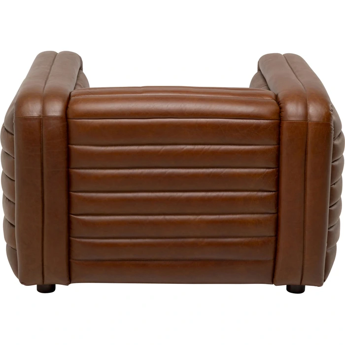 Fåtölj Aurelio är en kraftfull och exklusiv sittmöbel klädd i naturligt brunt läder, skapad för interiörer där komfort och karaktär står i centrum. Den generösa formen, tillsammans med horisontellt quiltade detaljer på rygg och sits, ger ett distinkt uttryck med inspiration från klassiska clubfåtöljer och modern mancave-estetik.