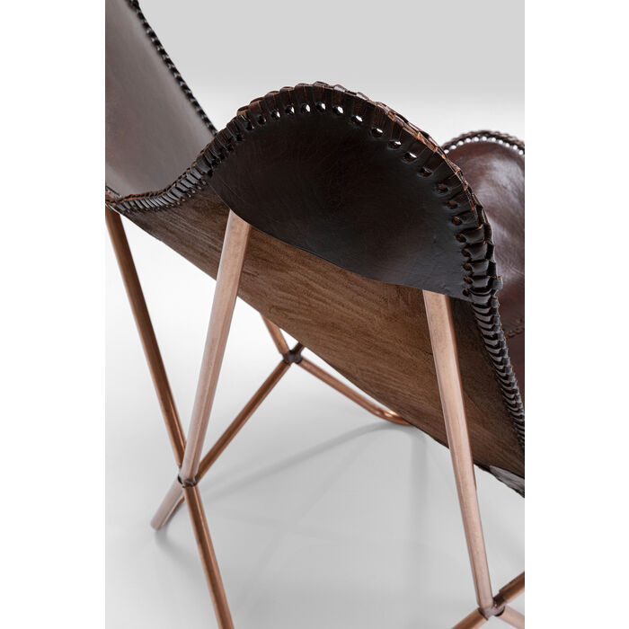 Fåtölj Butterfly - en klassiker i mörkt, brunt läder och ram i lackad stål. Vintagestyling i läder av högsta kvalitet. Fjärilen har alltid varit en favorit på grund av sin individuella stil. Denna version har brunt läder med metallbas i samma nyans. Bekväma sittplatser kombinerat med innovativ design. Den bruna nyansen ger denna attraktiva fåtölj en varm aura, skapar en riktig vintagehit och en möbel att vara stolt över.