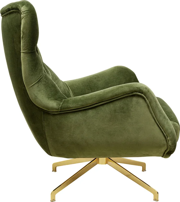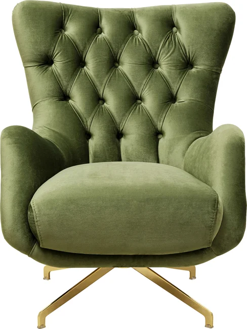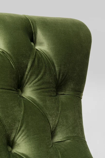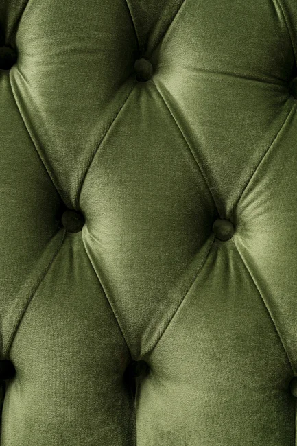 Fåtöljen Fager är en detaljrik sittmöbel med djuphäftad rygg, djupa nitar i sätet och i en elegant olivgrön nyans på sammetslent tyg. En otroligt vacker fåtölj som utger en känsla av lyx och flärd. Kroppen är gjord av massivt bokträ och erbjuder stabilitet. Allroundklädseln ger soffan ett särskilt raffinerat och högkvalitativt utseende tillsammans med de guldfärgade benen. Chesterfield-stilen med knappsömmar gör denna sammetsfåtölj till en klassiker.