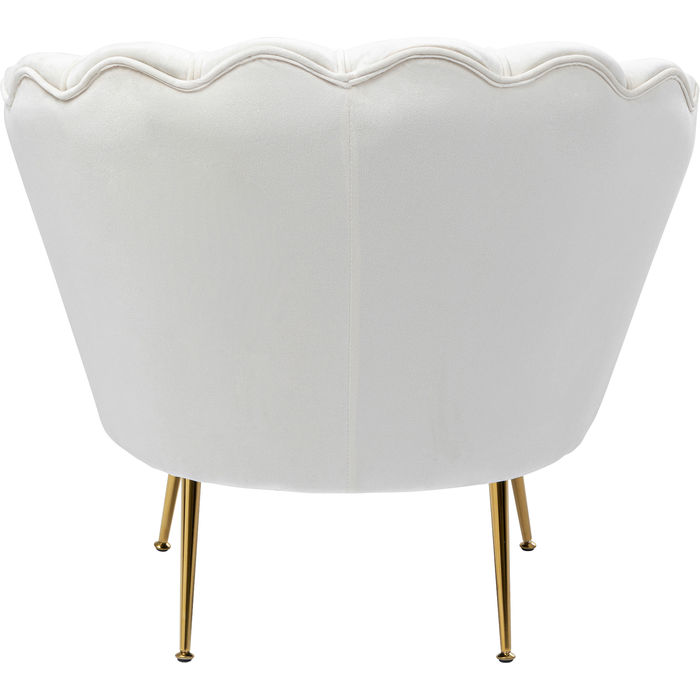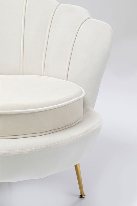 Graciös och vacker som en blomma är denna Fåtölj Lilja i cremevit sammet med nätta ben i mässingsfinish. Fåtöljen är välskräddad med rund böljande form, fina sömmar och passpoal. Ett smycke i vardagsrummet, sovrummet eller som en eye-catcher i hallen. Sittkomforten är lagom fast och lätt att ta sig i och ur. Komplettera gärna med pallen - Pall Lilja, Vit.