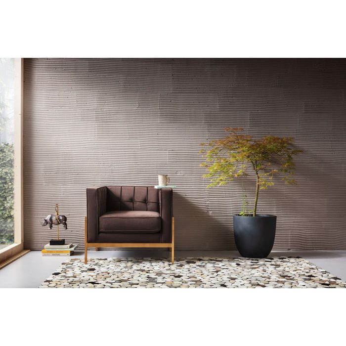 Skapa en sofistikerad och stilfull atmosfär med Fåtölj Ms. Taylor Brun Sammet – en lyxig sammetsfåtölj i en varm, mustig chokladbrun nyans. Med sitt raka, kubistiska formspråk, elegant mässingsram och dekorativa knappar är denna fåtölj en perfekt balans mellan klassisk design och modern stil.
