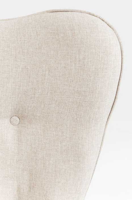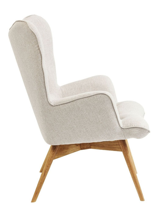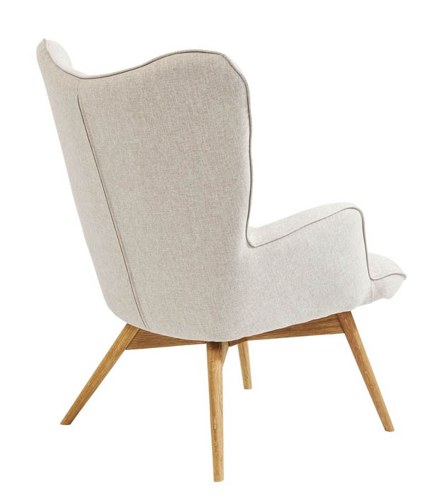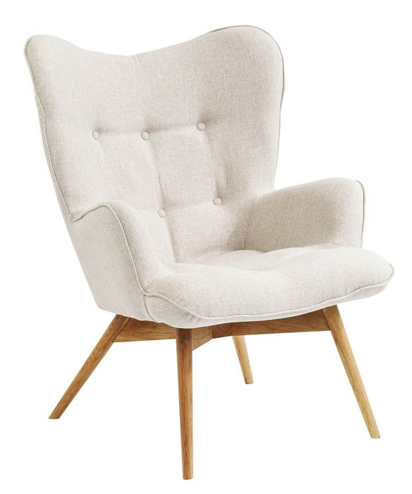 En klassisk fåtölj i retrodesign som är mycket bekväm, snygg och prisvärd. Fåtöljen finns i flera färger och strukturer - denna i en ljus beige linnestruktur - se närbilder som bättre framhäver den rätta sandfärgade nyansen. Vi gillar den välkomnande stilen som signalerar ledighet, relax och lyx och modellen passar bra med flera olika inredningsstilar. Mycket elegant textil av hög kvalitet! Sits och rygg är generöst dimensionerade samtidigt som hela stolen är helt klädd så att när du väl sätter dig ner vill du inte resa dig upp igen.