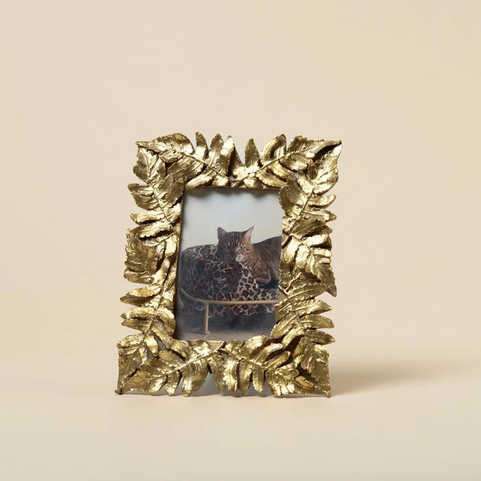 Fotoram Gold Leaves 10x15 cm är en elegant och dekorativ ram som lyfter fram dina favoritbilder på ett stilfullt sätt. Den gyllene ramen är dekorerad med handgjorda blad.