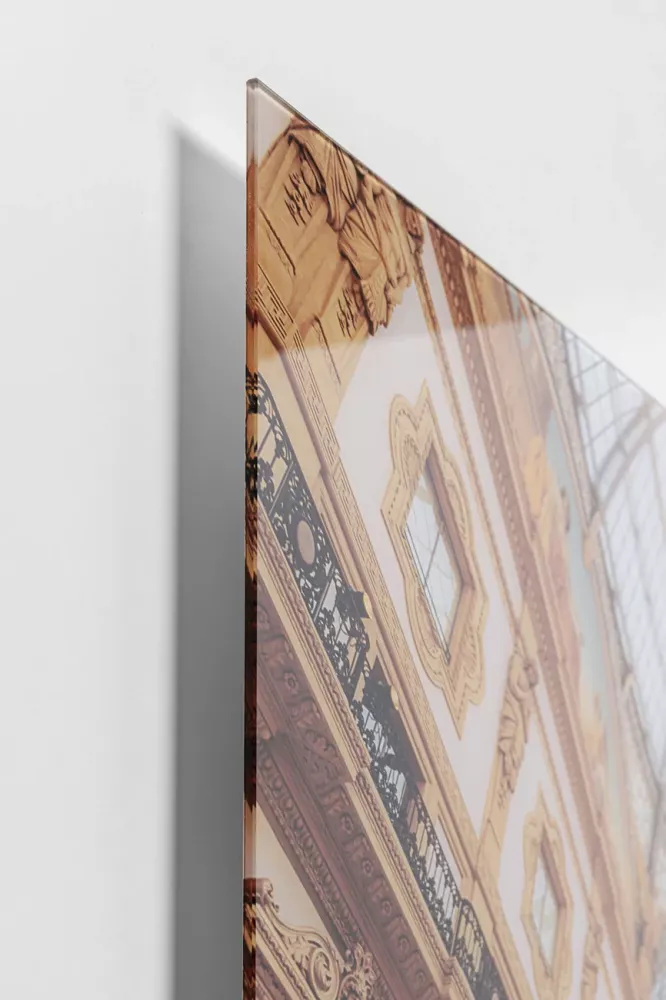 Glastavla Arkad 150x100 cm fångar arkitekturens storhet i ett mäktigt fotografi från en av Milanos mest ikoniska gallerior. Bildens perspektiv och ljussättning skapar ett imponerande djup, förstärkt av det högupplösta trycket bakom härdat säkerhetsglas. Tavlans glansiga finish och tunna profil gör den perfekt som ett centralt blickfång i vardagsrum, hall eller kontor. En dekorativ hyllning till stadens elegans och historia – ett konstverk som förflyttar dig till hjärtat av Italien.