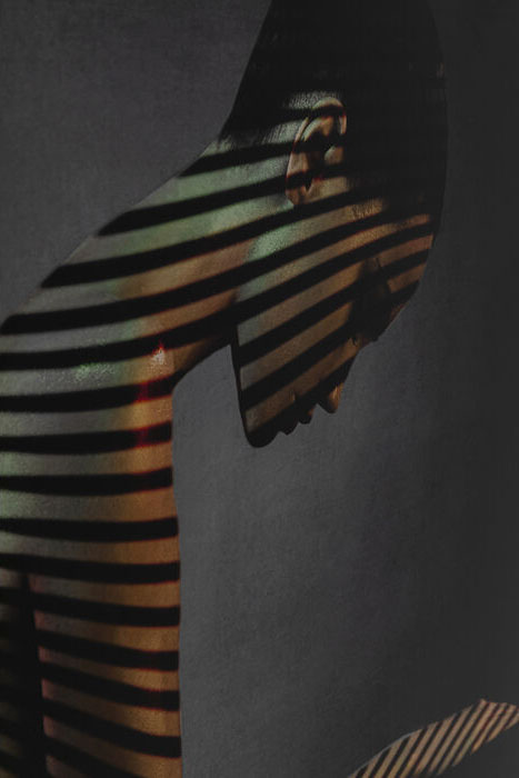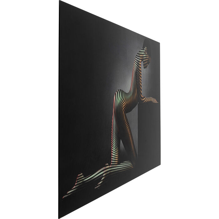 Cool fotokonst och glastavla med effektfullt kroppsmotiv där ljuseffekter ger ett spännande grafiskt mönster. Tavlan är uttrycksfull och vågad men också stilren som inredningsdekor för dig som vill skapa karaktär i din inredning. Snygg färgställning i svart, mörkgrått, ljusgrått och gulbeige. Alla våra glastavlor har distansklossar i bakstycket som ger en fin hängning med avstånd till väggen. Fästen sitter förankrade på glaset - lätt att hänga.
